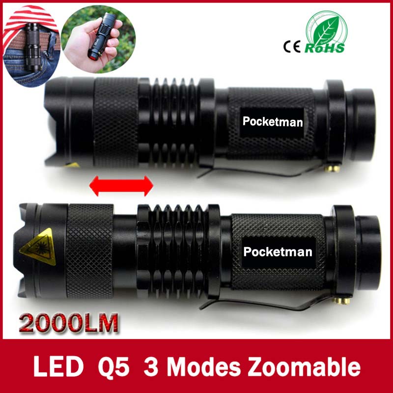 high-quality Mini Black Barnd 2000LM Waterproof LED Flashlight 3 Modes Zoomable LED Torch penlight free shipping